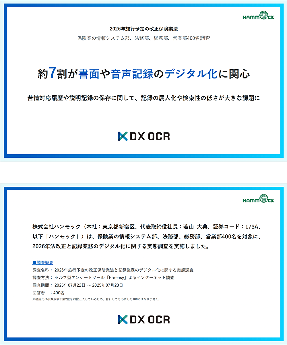 保険業の情報システム部、法務部、総務部、営業部400名を対象に、2026年法改正と記録業務のデジタル化に関する実態調査を実施しました。