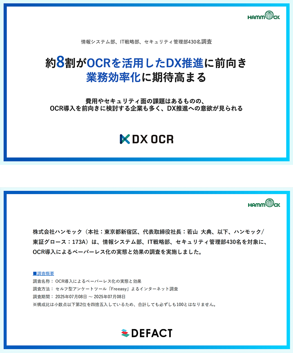 情報システム部、IT戦略部、セキュリティ管理部430名を対象に、OCR導入によるペーパーレス化の実態と効果の調査を実施しました。