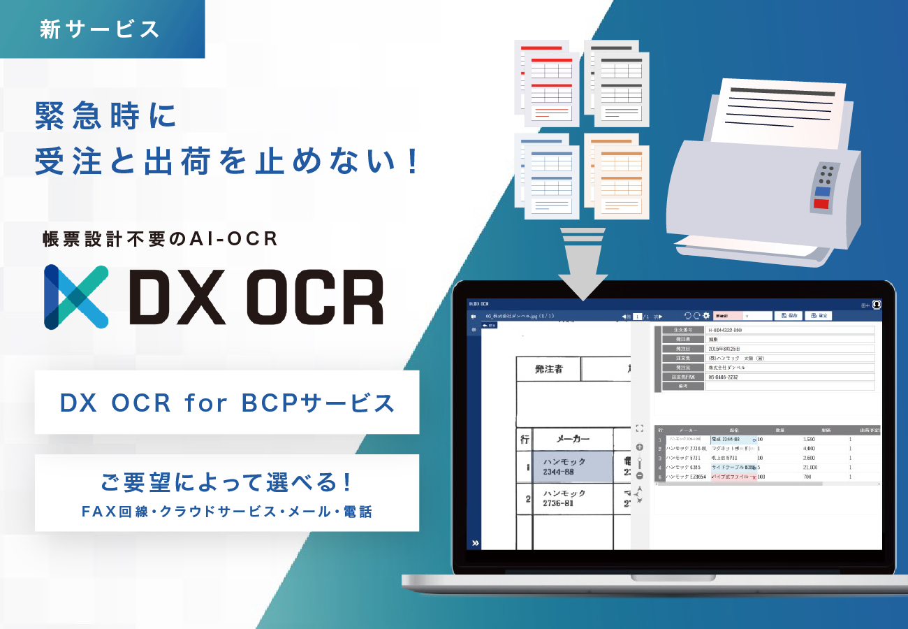 緊急時でも受注・出荷業務を止めずに対応できる「DX OCR for BCPサービス」は、BCP(事業継続計画)の一環として、システム障害やランサムウェア攻撃などのサイバーリスク、さらに地震や台風などの自然災害といった予測困難なリスクに備え、業務を継続できる体制を支援します。これにより、日常業務の効率化と非常時の事業継続を同時に実現します。
